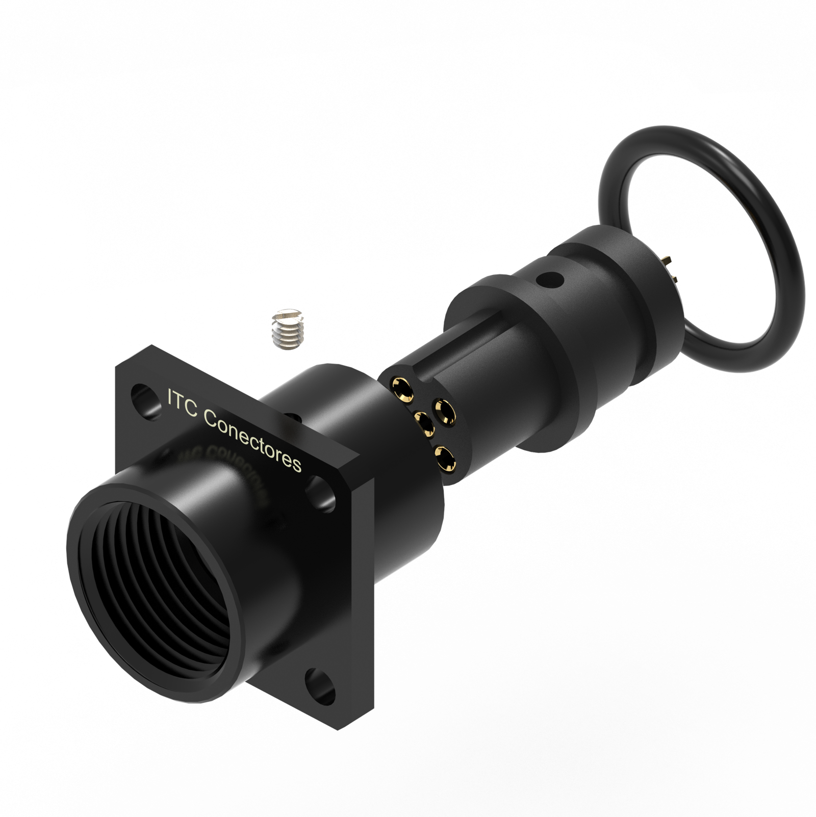 Sua construção combina carcaça metálica de alta resistência com isolante em poliacetal (POM), proporcionando excelente durabilidade, estabilidade térmica e resistência química. Os contatos fêmea com banho em ouro asseguram baixa resistência elétrica, maior vida útil e estabilidade na transmissão de sinais e energia.