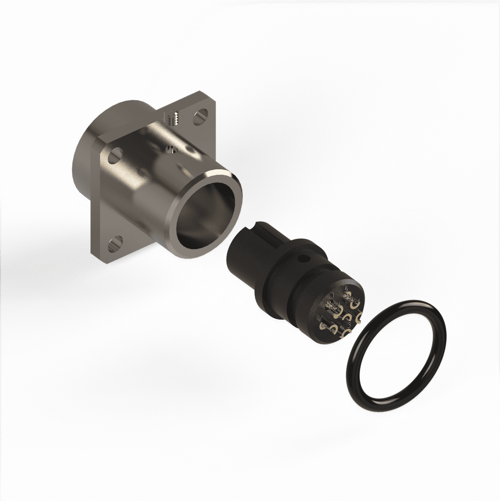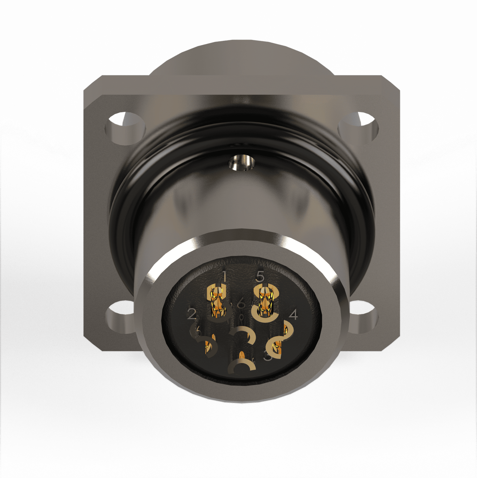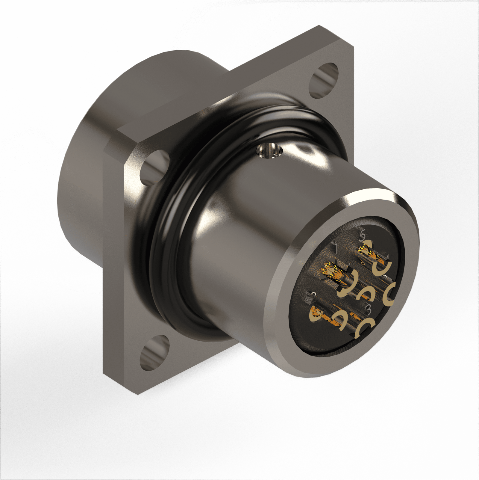 Conector Base Quadrada Circular M12 – 6 Vias – 1 Ampere – Fêmea – IP67 – Latão Niquelado 1,0-Ouro