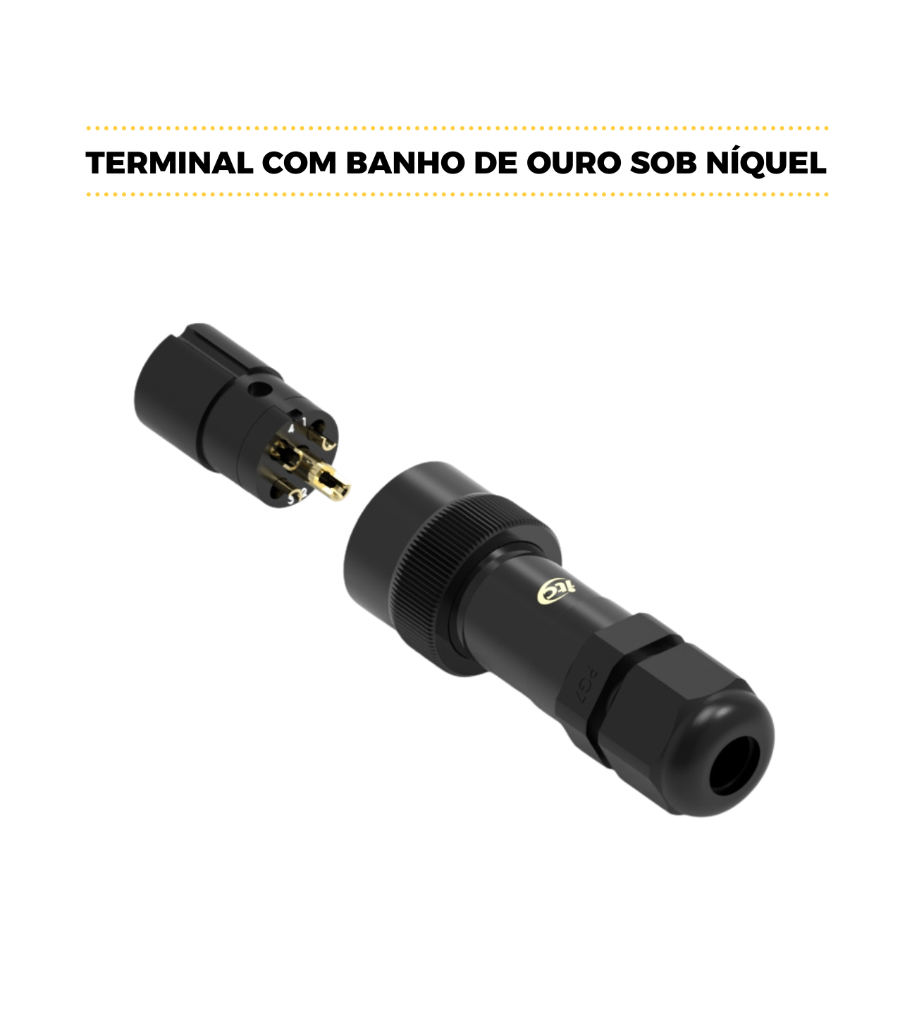 Além disso, opera em uma faixa de temperatura de -10°C a +100°C e possui vida útil de até 700 conexões, assegurando confiabilidade mesmo em ambientes exigentes.