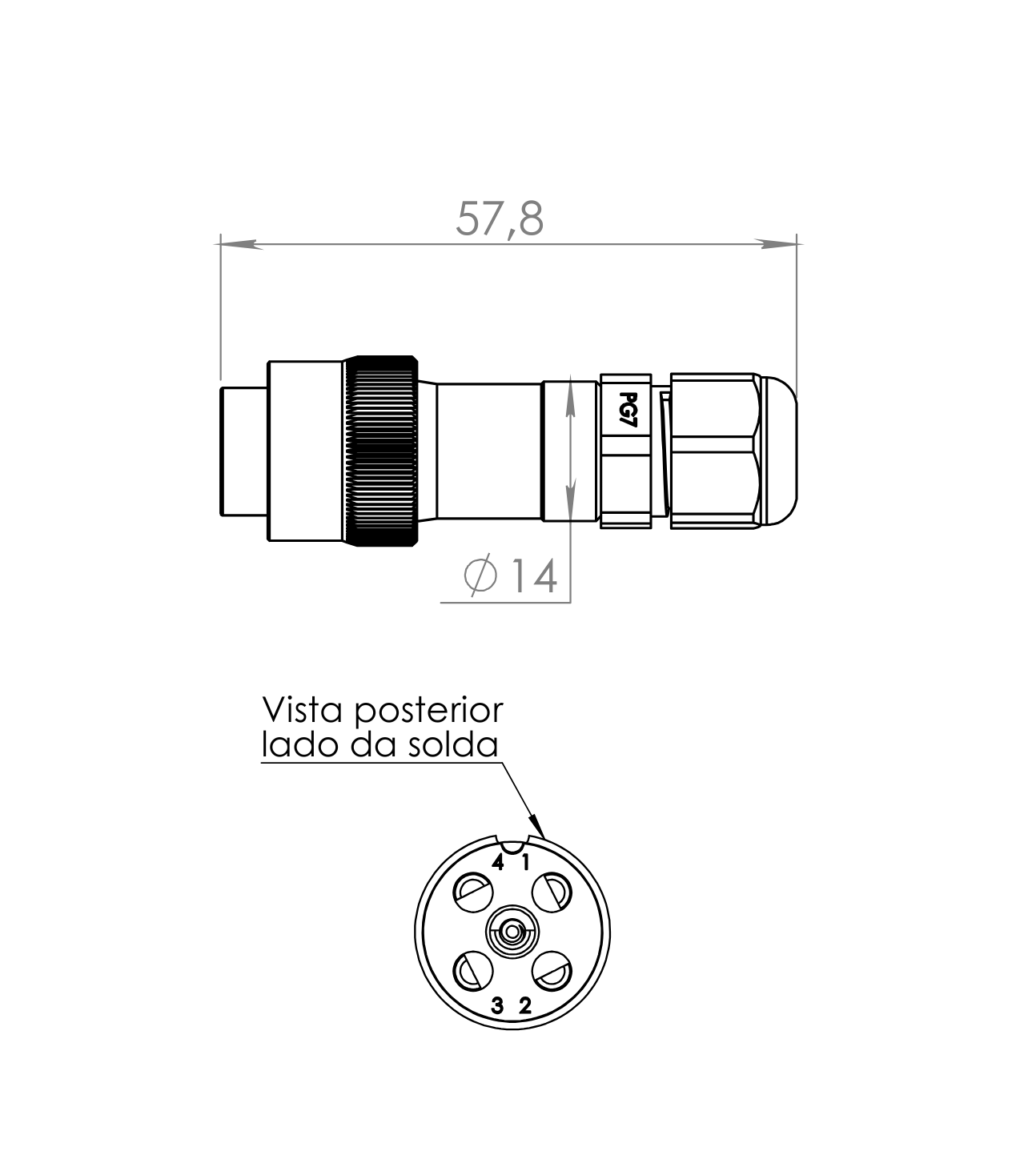Para maior versatilidade, o conector possui opções de prensa-cabo: