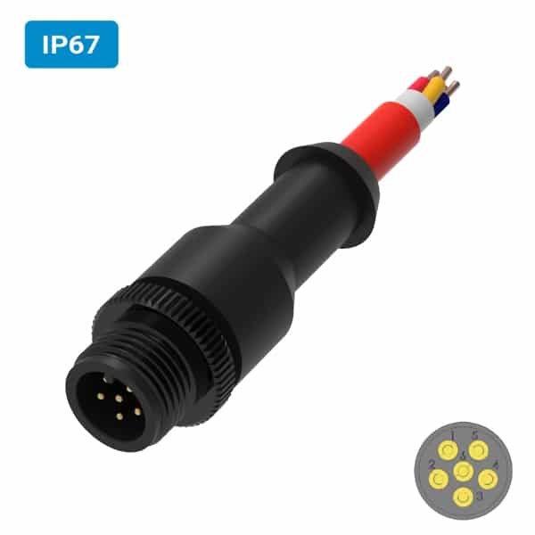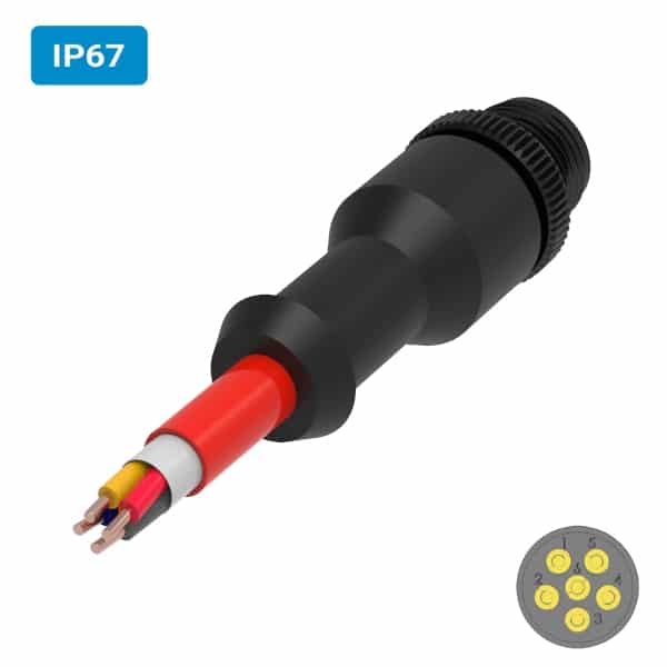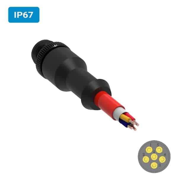 Conector injetado PVC M12 macho para cabo IP67 1 ampere