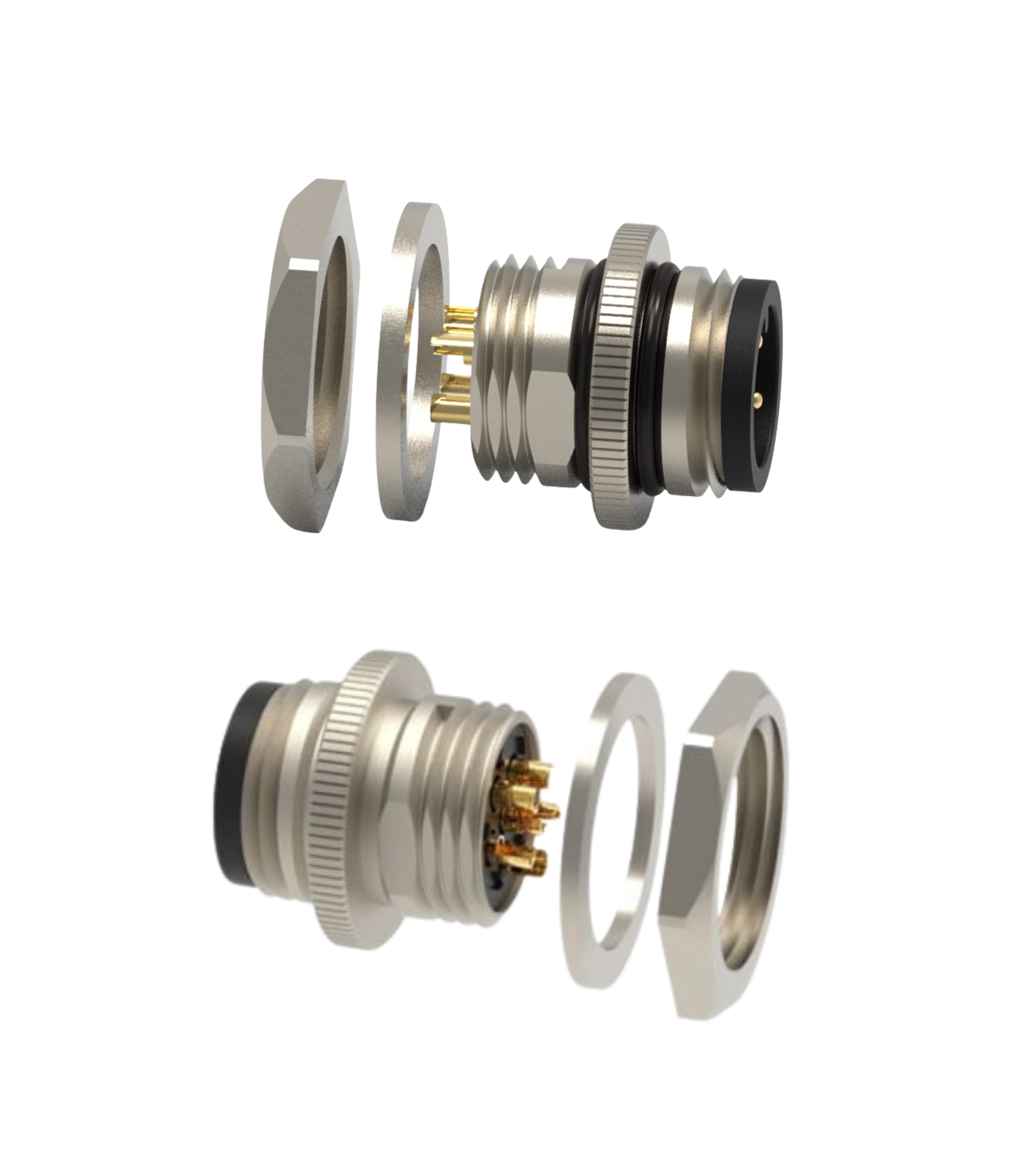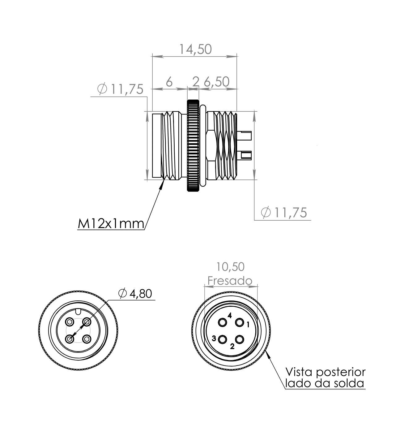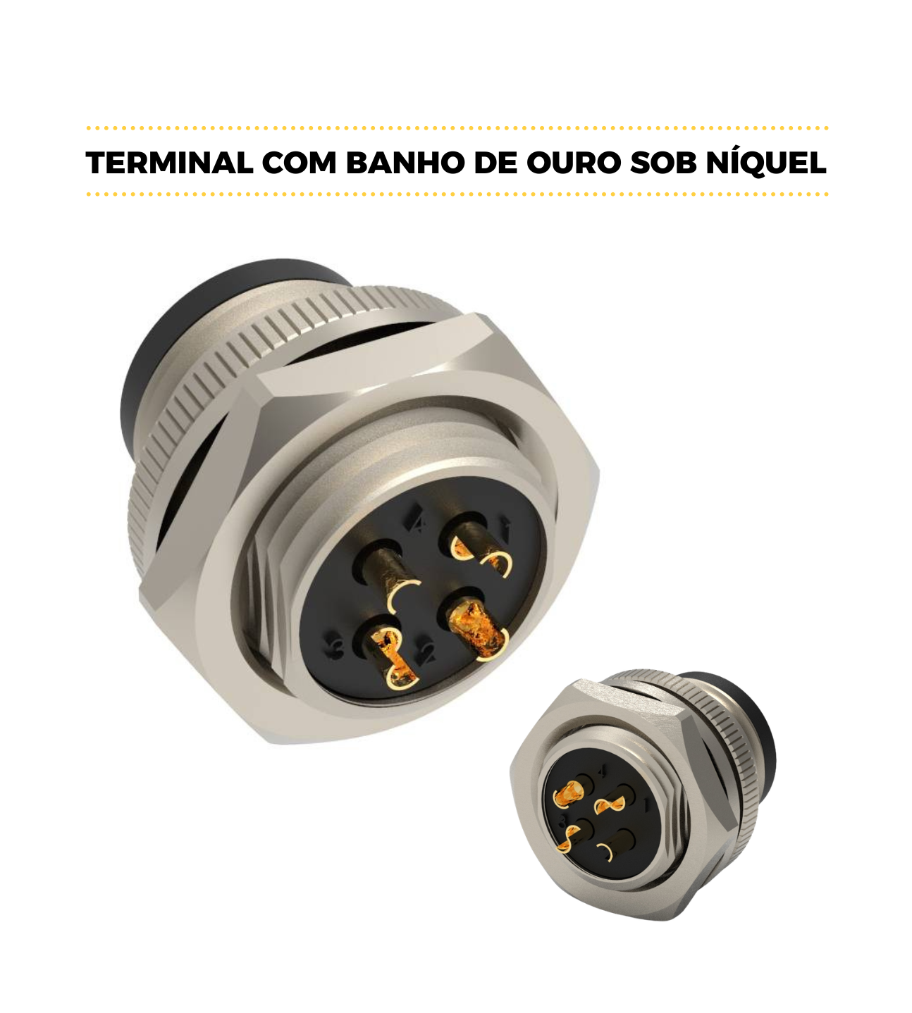 CONECTOR CABO CIRCULAR M12 RETO – 1 AMPERE – FÊMEA – PRENSA CABO ITC M12 – IP67 – LATÃO NIQUELADO 1,0 OURO