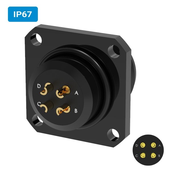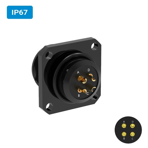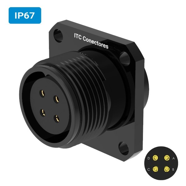 Conector militar H22 fêmea para painel IP67 6 amperes