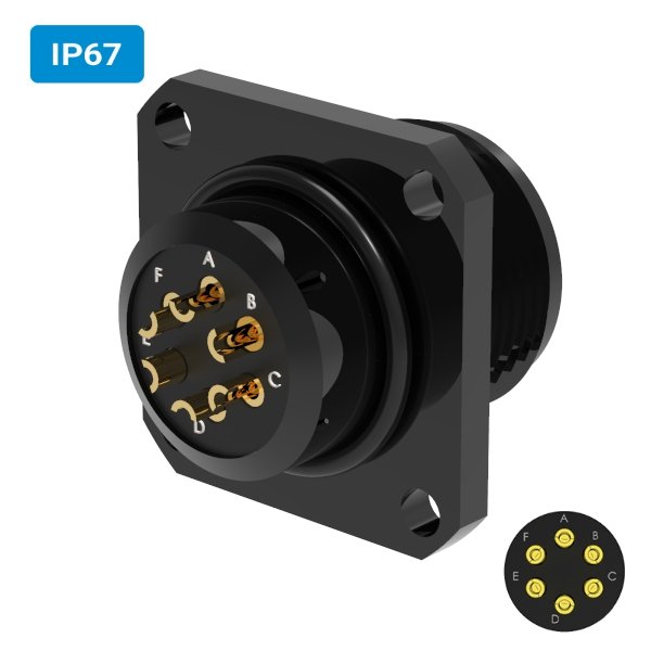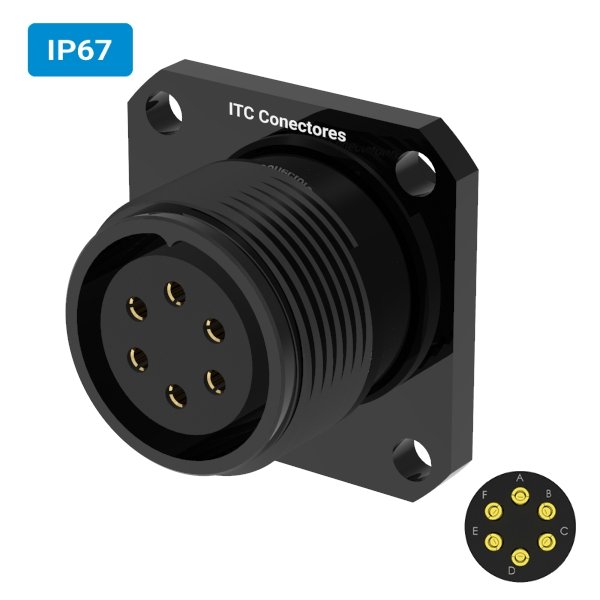 Conector militar H22 fêmea para painel IP67 6 vias 6 amperes