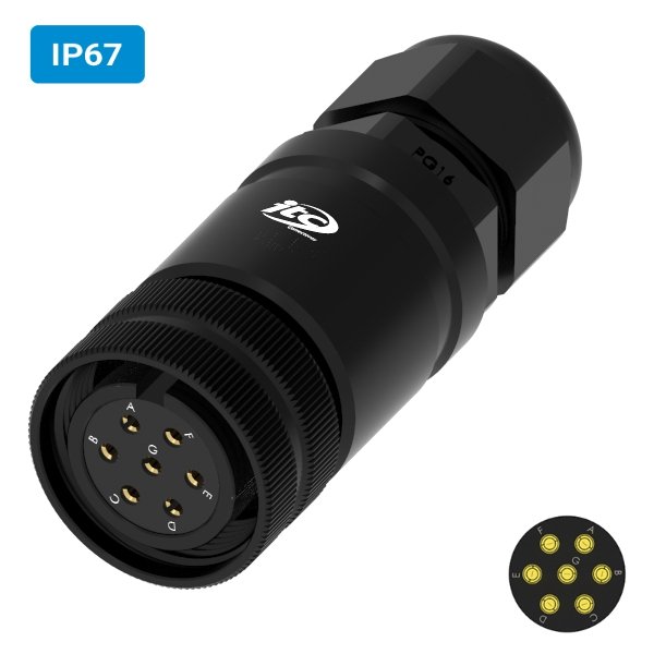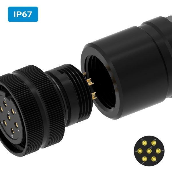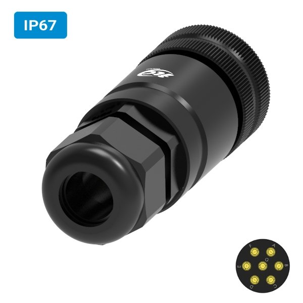 Conector militar H25 fêmea para cabo IP67 7 vias 6 amperes