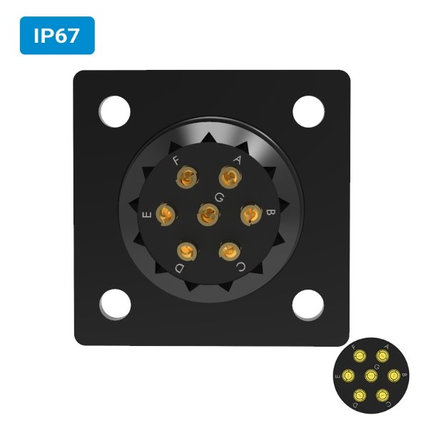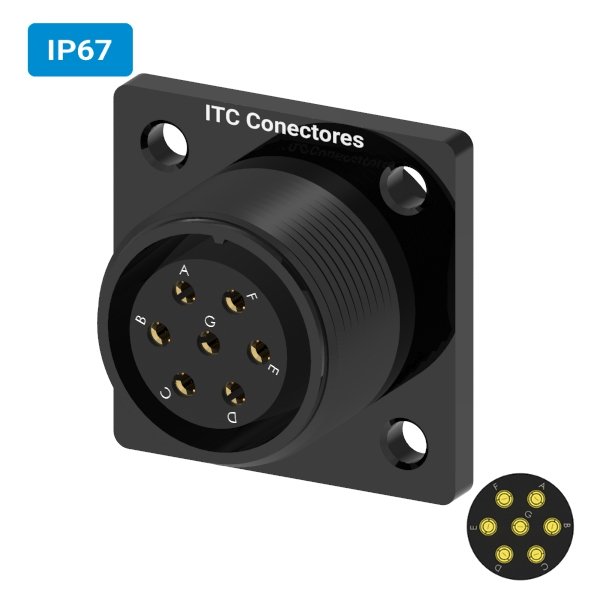 Conector militar H25 fêmea para painel IP67 7 vias 6 amperes
