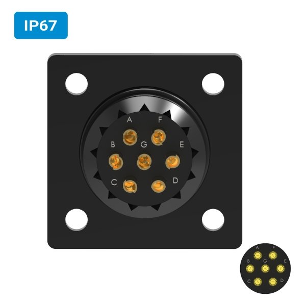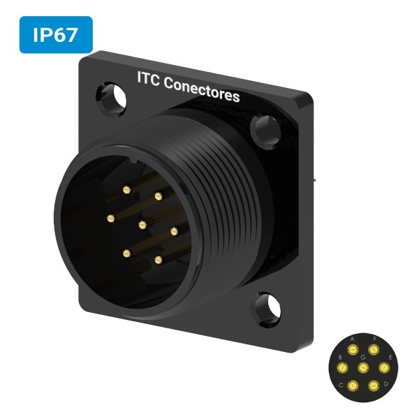 Conector militar H25 macho para painel IP67 7 vias 6 amperes
