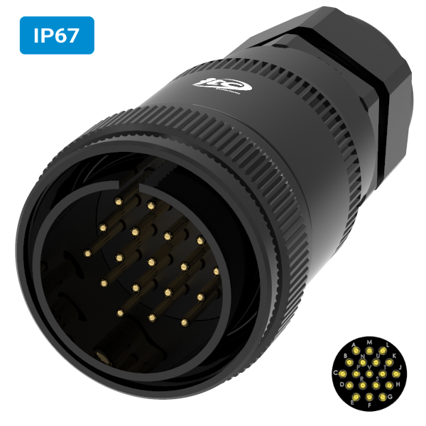Conector militar H32 macho para cabo IP67 19 vias 6 amperes