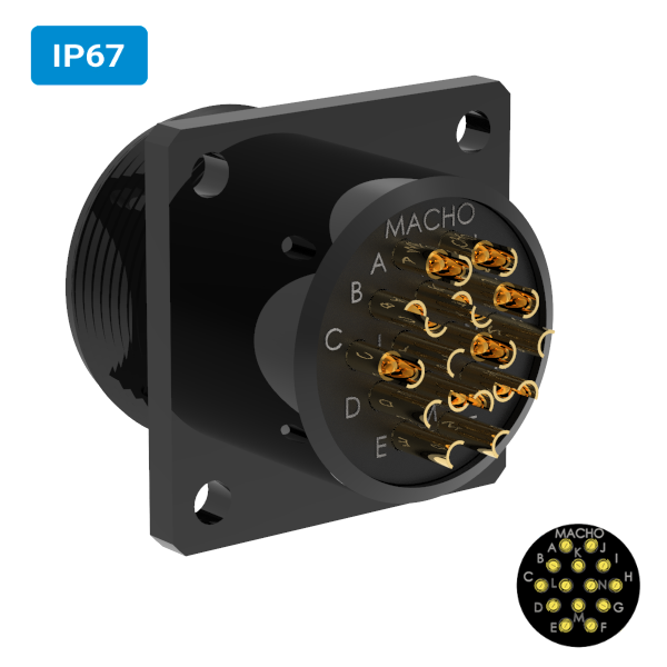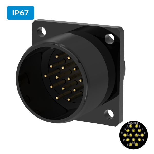 Conector militar H32 macho para painel IP67 14 vias 6 amperes