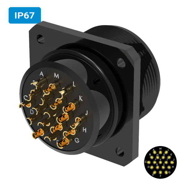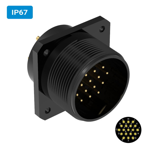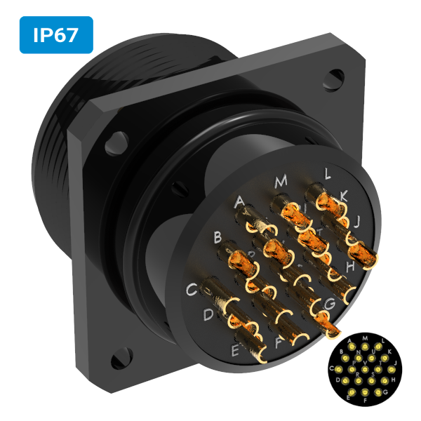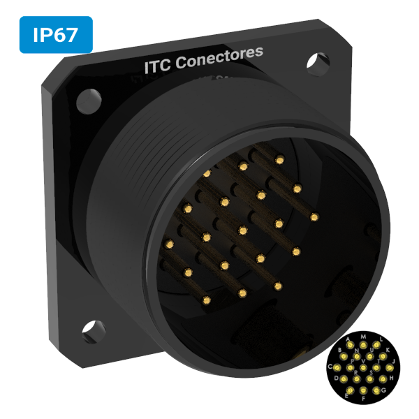 Conector militar H32 macho para painel IP67 19 vias 6 amperes